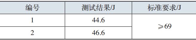 對加工完成的螺釘及同爐拉伸試樣進行了單軸拉伸和沖擊試驗,單軸拉伸試驗測量了螺釘最大軸向拉力及材料抗拉強度和伸長率,沖擊試驗測量了材料韌性性能。最終試驗測試結果表明,螺釘抗拉強度及伸長率滿足標準要求,沖擊吸收能量低于標準要求,材料性能按照標準QJ 2142—1991《超高強度鋼的熱處理》執行,測試結果見表1~表3。