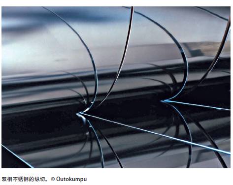 傳統(tǒng)的鋼卷縱切機可用于剪切雙相不銹鋼卷板和鋼帶。雙相不銹鋼鋼卷從開卷機送出,從縱切線上下刀架的圓形分切刀片中通過,卷帶盤將剪切后的鋼卷重卷。分切刀片的位置可根據(jù)所希望的板卷產(chǎn)品的寬度調整。由于雙相不銹鋼的強度比奧氏體不銹鋼高,縱切刀具磨損和邊部的穩(wěn)定性比較難控制。保持雙相不銹鋼卷良好的縱切邊部質量需要使用工具鋼或硬質合金刀片。
