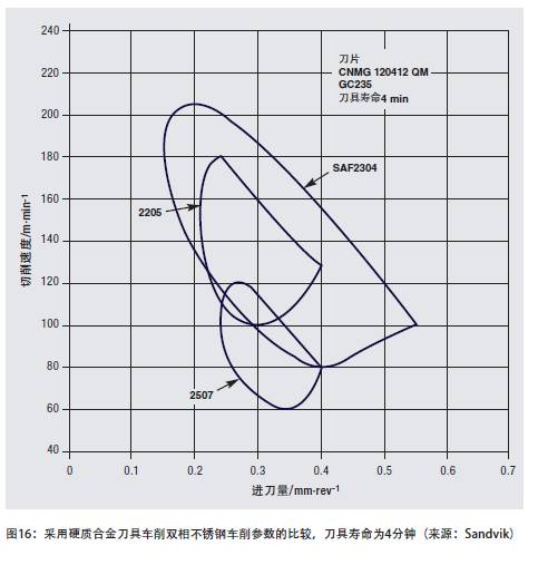 • 使用大功率、堅固的設備,刀具和工件需要很牢固地固定(對于同樣的切割,雙相不銹鋼需要的切割力比相應奧氏體不銹鋼的大得多)。