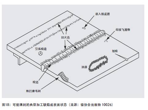 雙相不銹鋼的加工后清理與其他不銹鋼的要求沒有差別。加工后清理很重要,就像控制層間溫度或在焊接過程中使用保護氣體一樣重要。加工后未經適當清理的不銹鋼,可在比母材低得多的溫度下或腐蝕性弱得多的環境中失效。這意味著除非加工后保持或恢復材料的最佳表面,否則使用耐蝕性更好的材料所帶來的額外費用就被浪費了。焊接飛濺物,焊接氧化色、標記筆痕跡,起弧點和咬邊在水溶液環境中均可成為縫隙。同時,它們也可具有不同于不銹鋼表面的電位,因此可能發生電化學反應。消除這些對保護性鈍化膜有破壞作用的缺陷非常重要。圖18歸納了焊接過程中可能出現且應當在不銹鋼投入使用之前清除的這些缺陷。