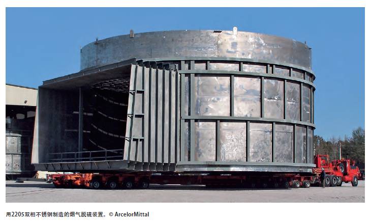 現代化洗滌裝置目前能去除廢氣中90%的SO2。現代化FGD裝置由具有不同溫度、氯化物含量和pH的幾個區組成。2205不銹鋼(S32205)由于與奧氏體不銹鋼相比成本更低,耐腐蝕性更好,已經在歐洲、亞洲和美洲用于FGD裝置。由于它焊后具有高強度、良好的耐腐蝕性能和高韌性,已成為最受歡迎的FGD吸收塔選材。
