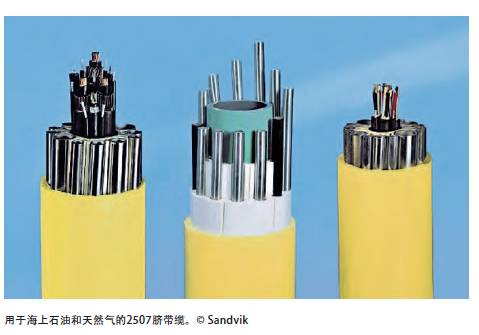 臍帶纜是用來使用液壓線進行井口操作控制的,也可用于化學品噴射。自從鋼臍帶纜被引入市場以來,雙相不銹鋼一直是最常用的材料。最近幾年,開發深海油氣田的趨勢,需要更長的臍帶纜。提高材料的強度可降低臍帶纜的重量,使長度更長。目前的發展趨勢是將臍帶纜用在溫水中,將立管引入臍帶纜。因此,對耐腐蝕性和機械強度的要求提高。已開發出比超級雙相不銹鋼耐腐蝕性更好,強度更高的新型特超級雙相不銹鋼用于臍帶纜。