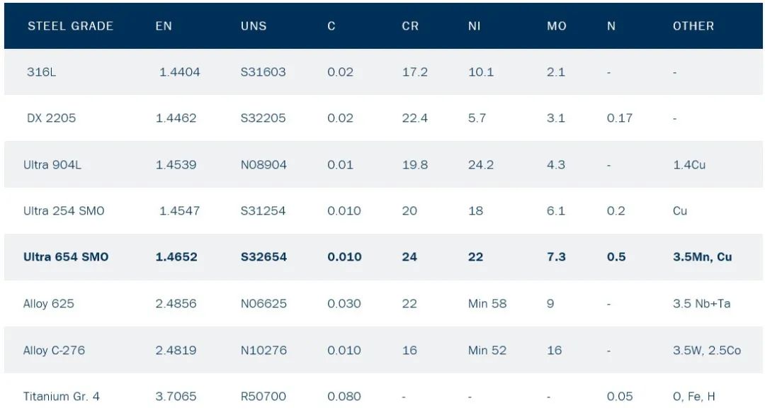 Ultra 654SMO 彌補從 不銹鋼 到 鈦合金 的選材空缺