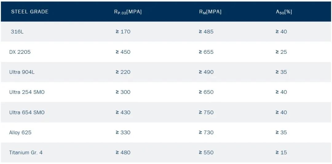 綜合考慮Ultra 654SMO的所有特性-包括耐腐蝕性,高機械強度和良好的可成型性。在要求苛刻的海水應用(如熱交換器)中,Ultra 654SMO具有替代鈦合金的潛力。