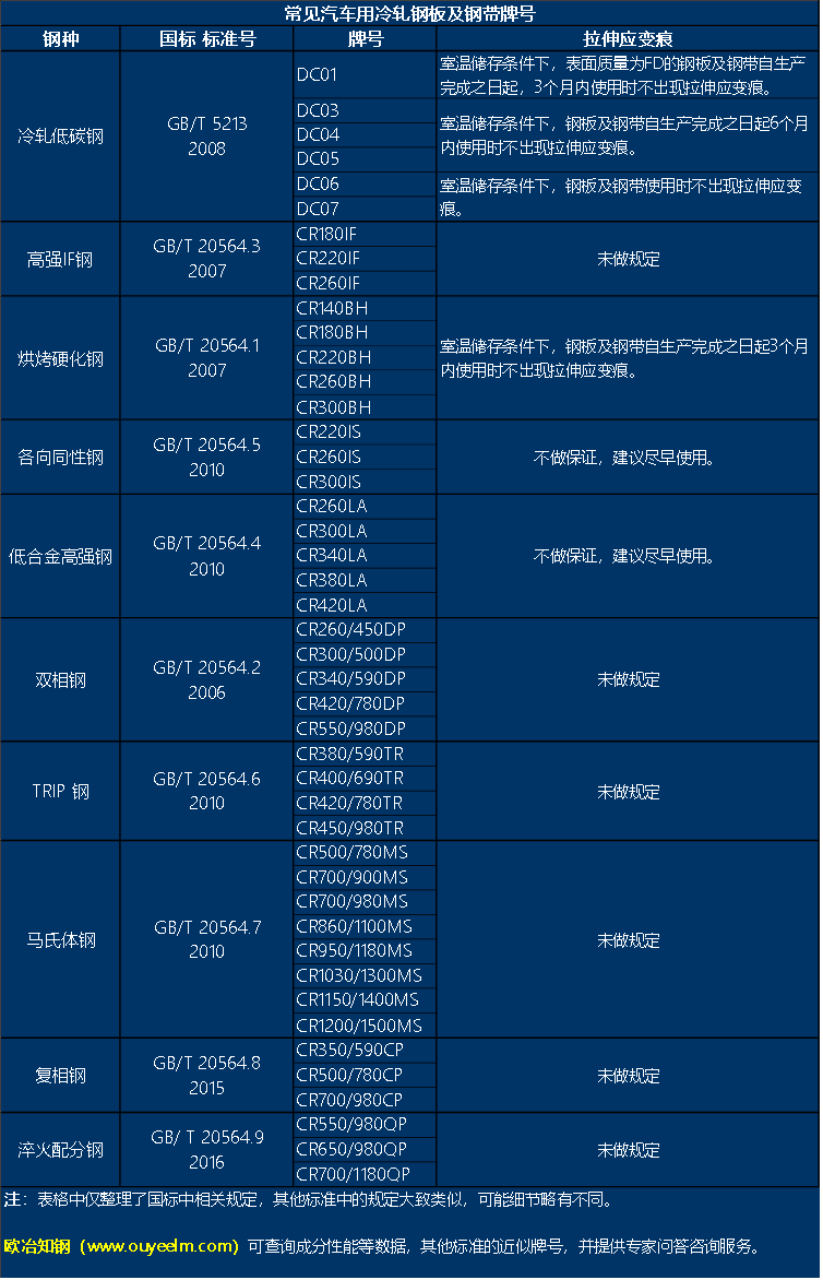 業(yè)內(nèi)通常說的力學(xué)性能質(zhì)保期,以類似SPCC、340LA等低碳鋼牌號為例,習(xí)慣上指的是兩個方面,一是部分冷熱軋低碳鋼的性能會隨著儲存時間的延長而出現(xiàn)劣化,影響成形性能的情況。二是因時效導(dǎo)致的拉伸應(yīng)變痕情況。這些在標(biāo)準(zhǔn)中都會有相關(guān)的說明。