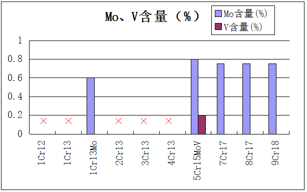 在刀具用鋼成分中,除了C含量決定鋼的強度,還有一些貴金屬元素起著十分重要的作用,比如Cr含量影響鋼的腐蝕性和刀具的鋒利持久性,Mo和V的添加可以增強鋼的硬度、耐蝕性,還能調節鋼材強度和韌性的緊張關系。