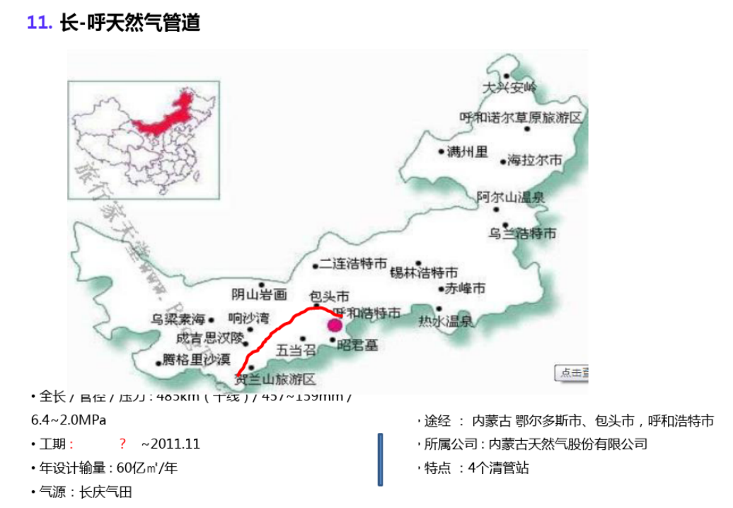 我國(guó)主要天然氣長(zhǎng)輸管線情況