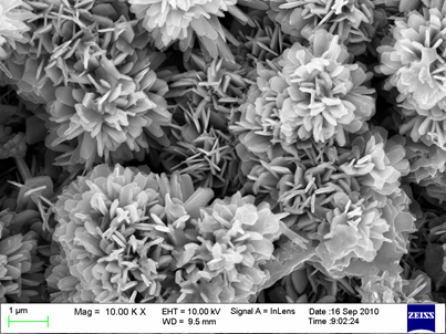 納米莎草花——水熱合成法制備的(ZnAg0.01)O1-δ復(fù)合材料中ZnO組成的納米花團(tuán)簇(呂燕劉曉燕李雙明 沈陽飛機(jī)工業(yè)(集團(tuán))有限公司)