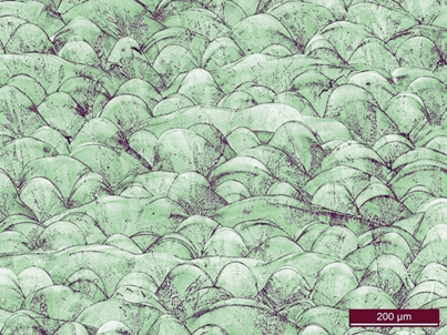 翠綠青山——316不銹鋼激光熔覆組織,偽彩色(姚罡 中國航空制造技術(shù)研究院)