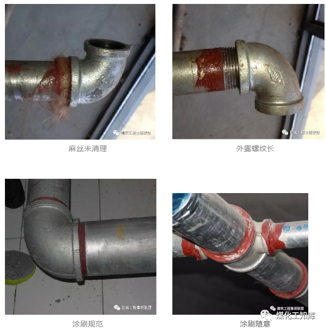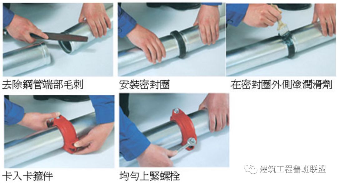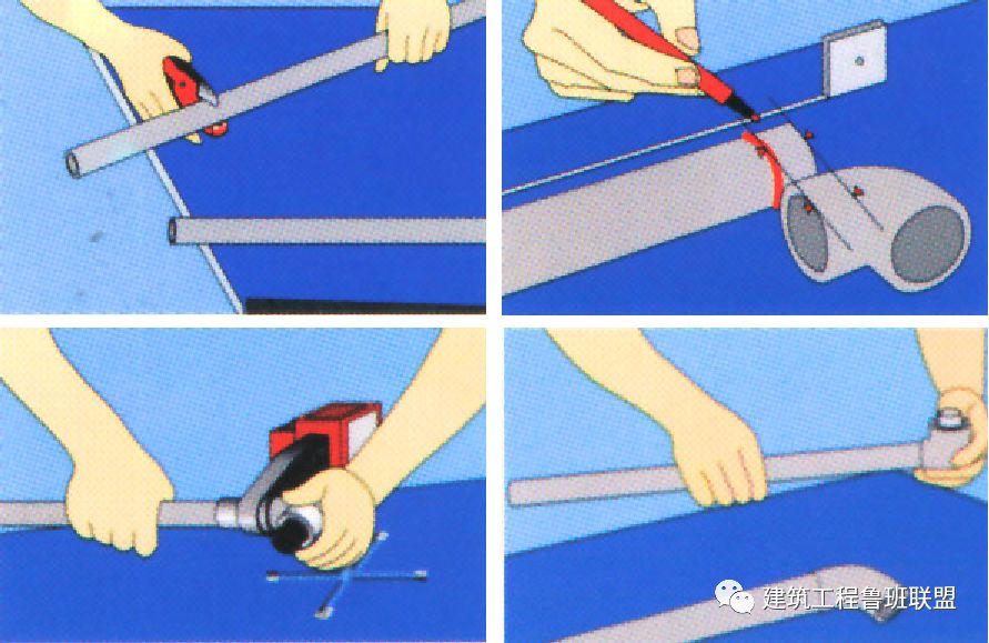 分2-3次切削,螺紋應清楚、完整、光滑,不得有毛刺和亂絲。如有斷絲或缺絲,不得大于螺紋全扣數的10%。螺紋還應符合裝配公差的要求,有1/16的錐度,防止螺紋之間配合過松或過緊。· 國家標準《55°密封管螺紋》GB/T7306,適用于管子、閥門、管接頭、旋塞及其他管路附件的螺紋連接。擰緊后露出2-3牙螺尾、清除多余填料、外露絲牙涂刷紅丹防銹。紅丹涂刷寬度一致,涂層均勻,無流淌、漏涂現象。1)配對法蘭規格、型號相同;與設備法蘭連接時應按其規格配對;3)緊固螺栓規格相同、方向一致、螺栓露出長度為1/2螺栓直徑或與螺母齊平;5)水平管法蘭最上面兩個螺孔保持水平、垂直管法蘭靠墻兩個螺孔與墻平行。·法蘭標準:國家標準GB9112-9123、機械部標準JB79-86、化工部標準HG5008-5028及石油工業部標準SYJ4,法蘭螺栓孔中心相同,JB標準和HG標準的管徑為“小外徑”,GB標準和SYJ標準為“大外徑”,使用時應注意個別規格法蘭的螺栓孔數量不同。1)法蘭制作應法蘭面平整、對角線長度相等、焊縫飽滿;2)法蘭螺栓孔及鉚釘間距均勻且符合規范要求,法蘭四角處設螺孔;3)法蘭連接時螺栓方向應統一、長度一致,螺栓材質與風管相對應;4)法蘭緊固后應嚴密無泄漏,法蘭面間隙均勻,墊片不得凸入管內或突出法蘭外;· 中、低壓系統風管法蘭的螺栓及鉚釘孔的孔距不得大于150mm,高壓系統風管不得大于100mm。矩形風管法蘭的四角部應設有螺孔。3)法蘭四角采用螺栓固定,中間用彈簧夾或頂絲卡,間距≯150mm,外端距風管邊緣≯100mm。按規范要求坡口,一般為V型,坡口角度60-75°,組對間隙2-3mm。內壁錯邊量不宜超過壁厚的10%,且≯2mm;外壁錯邊量≯3mm。1)不銹鋼管焊接內部充氬保護,焊后對焊縫及熱影響區進行酸洗、鈍化處理;2)紫銅管釬焊不得加熱過度(650-750℃ ),焊后清除焊接接頭處殘留的熔渣等雜物;銅管焊接后在焊料充分凝固但尚未完全冷卻時,用回絲、清水擦洗留在焊縫處的焊劑,干回絲擦干。然后在焊縫處涂上清漆一度,以防止銹蝕。不銹鋼管焊接后,用不銹鋼刷蘸取酸膏刷洗焊縫,呈白亮色為止,用清水沖凈;然后用鈍化液揩檫一遍,用冷水擦洗干凈,最后用熱水沖洗并擦干即可。1)檢查管口尺寸、圓度及制造質量,應滿足溝槽制作的要求;2)按規定的時間、分次加工溝槽,并復測溝槽的深度等尺寸;1)清理管端、套上橡膠密封圈、裝上卡箍、緊固螺栓;2)溝槽二端管道中心線一致,溝槽安裝方向(緊固螺栓位置)一致;3)直管段宜采用剛性接頭,在管段上每4-5個連續的剛性接頭間設置一 個撓性接頭。溝槽接頭兩端支架安裝