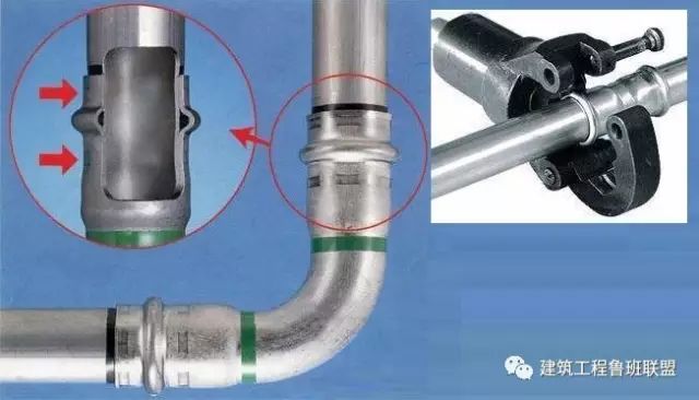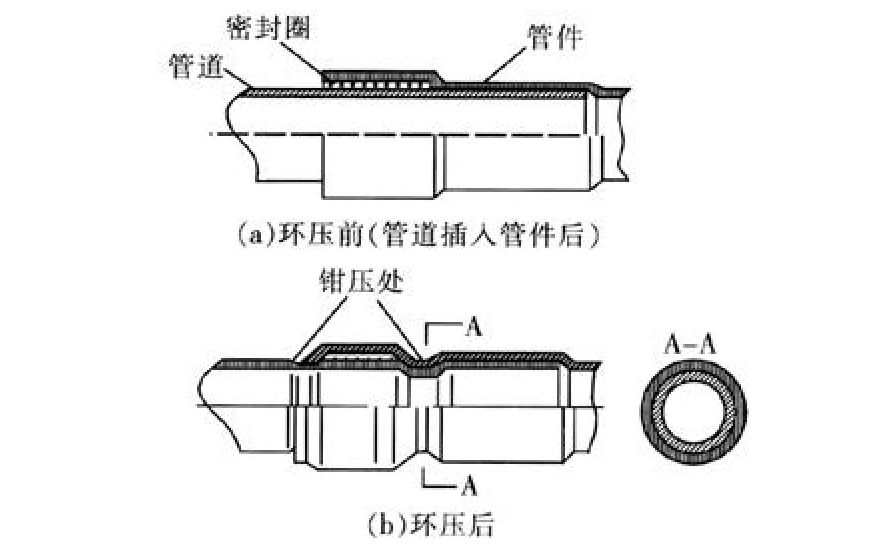 清理插入口、標注插入深度。按規定深度插入管子,保持軸線垂直。使用專用卡壓工具卡壓接頭,卡壓后用量規檢查卡壓尺寸是否到位。