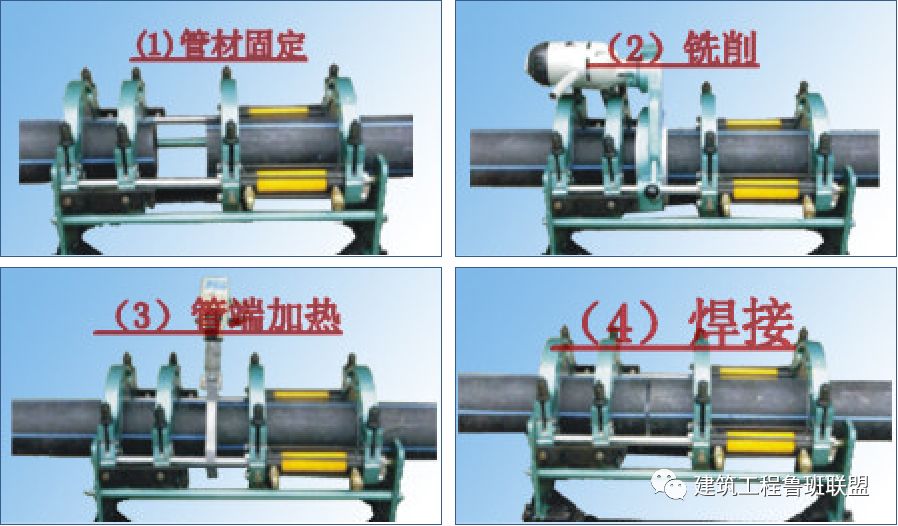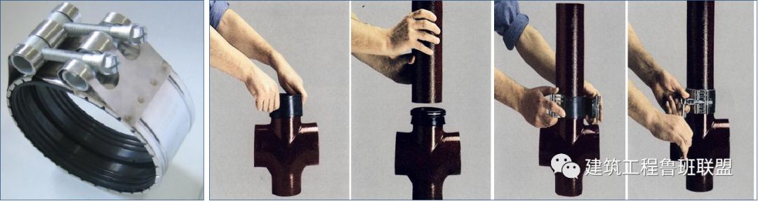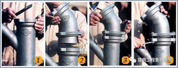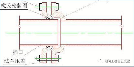 環壓式連接清理熱熔部位、承插連接的標注熱熔深度。使用專用熱熔機按規定的加熱時間加熱連接部位。加熱后按規定壓力、時間使接頭熔合,接頭處形成一均勻熔接圈。鑄鐵管連接前清理承插口影響接口嚴密性的雜物,正確放入橡膠密封圈。按施工標準要求的深度插入、保持兩管段的垂直度。
