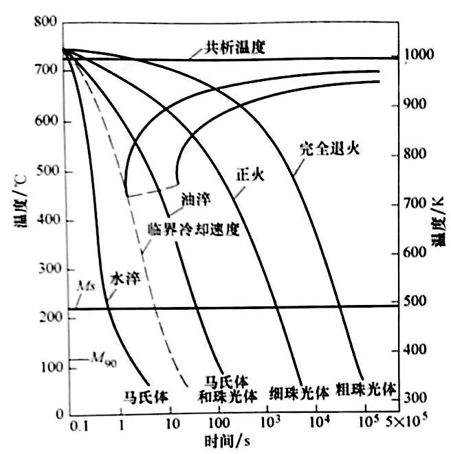 ▲圖2 共析鋼的冷卻速度于顯微組織的對應(yīng)關(guān)系
