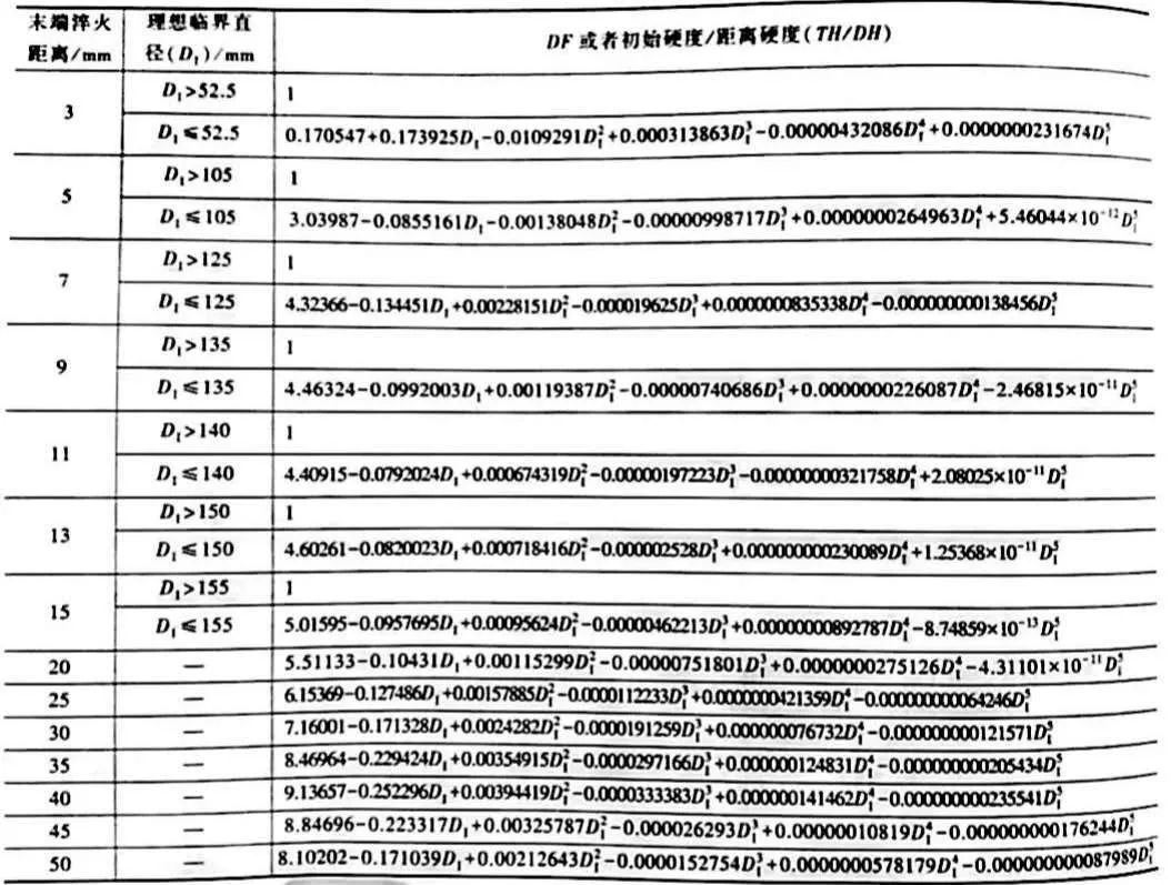 ▼表14 非硼鋼距離硬度的比例系數(shù)(DF)