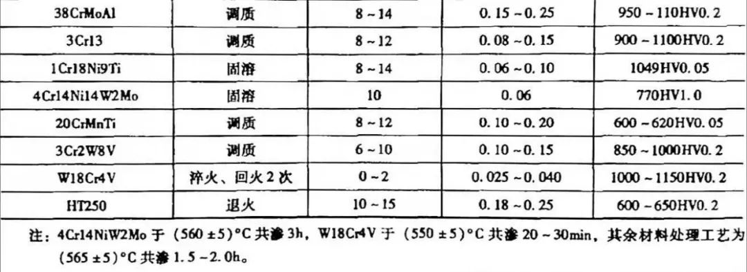 滲氮對(duì)材料的適應(yīng)面非常廣,一般的鋼鐵材料和部分非鐵金屬,如鈦及鈦合金等,均可進(jìn)行滲氮及多元共滲處理。以滲氮為主的多元共滲用鋼與滲氮用鋼是一致的。