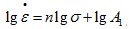 3-1式中A1、n為常數,A1是與材料特性和試驗溫度相關的常數,n為穩態蠕變速率應力指數。等式兩邊取對數: