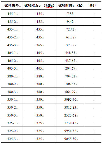 金屬材料的持久強度極限通過高溫拉伸持久試驗測定。持久強度極限的測定方法與蠕變極限類似,同樣在特定溫度下選擇不同應力進行蠕變試驗,不同之處在于試驗進行至試樣蠕變斷裂為止。一般在試驗過程中,不需要測定試樣的伸長量,只要測定試樣在規定溫度和一定應力作用下直至斷裂的時間。[1]