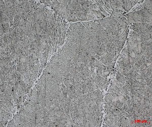 奧氏體與滲碳體的共晶混合物。呈樹枝狀的奧氏體分布在滲碳體的基體上。