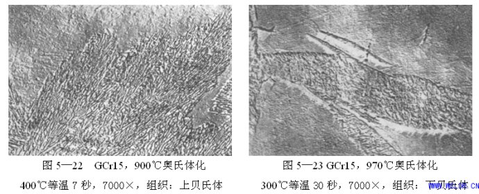 板條狀鐵素體單相組成的組織,也稱為鐵素體貝氏體。形成溫度在貝氏體轉變溫度區的最上部。板條鐵素體之間為富碳奧氏體,富碳奧氏體在隨后的冷卻過程中也有類似上面的轉變。無碳化物貝氏體一般出現在低碳鋼中,在硅、鋁含量高的鋼中也容易形成。