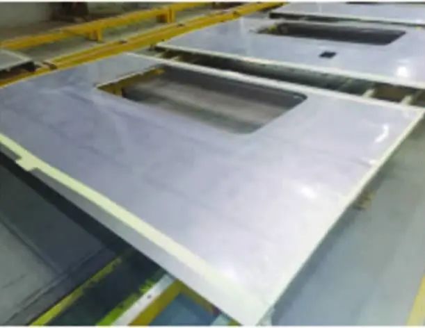 選材設計的防腐蝕要求 目前,不銹鋼地鐵車輛的車體材料設計多數采用“不銹鋼+局部碳鋼”的混合設計模式:整個車體僅端牽枕采用碳鋼材料,其余部分為不銹鋼材料。端牽枕采用碳鋼材料主要是為了解決端牽枕部位的厚板承力和焊接變形等問題。 不銹鋼車體材料主要為防腐蝕性能優良的SUS301L系列奧氏體不銹鋼,包括SUS301L-ST?SUS301L-MT?SUS301L-HT?SUS301L-DLT等多個強度級別的材料。選材時主要考慮部件的強度需求以及成型要求。 底架端部結構為碳鋼材料,牽枕緩承力部件主要采用具有良好冷成型性能的高強度耐候鋼。不銹鋼材料防腐蝕性能較好,表面不需要再涂漆,但外露的弧焊焊縫部位要進行鈍化處理,碳鋼部件外露面、異種鋼接頭混合區域都要進行油漆處理。 不銹鋼車體腐蝕原因 由于不銹鋼表面存在鈍化膜,在一般情況下不銹鋼較難與介質發生化學反應而被腐蝕,但并不是在任何條件下都不能被腐蝕。當環境中存在腐蝕性介質和誘因時,不銹鋼也能與腐蝕介質發生緩慢的化學和電化學反應從而腐蝕生銹。如不銹鋼表面附著的油污、灰塵、酸堿鹽等污染物在大氣、水等環境作用下會轉化成腐蝕介質,與不銹鋼基體發生氧化反應形成化學腐蝕;不銹鋼加工過程中產生的表面劃痕,附著的割渣、飛濺物等易生銹物質,在大氣和水等環境作用下與不銹鋼基體形成原電池產生電化學腐蝕現象。因此,在不銹鋼車體制造過程中應采取有效措施保護不銹鋼表面,盡量避免銹蝕條件和誘因的產生。通過分析某個非涂裝不銹鋼車體生產過程中的腐蝕現象,將生產過程中導致不銹鋼車體腐蝕的原因歸納為以下五類: 1 存放、運輸及吊運不當 在存放、運輸及吊運中,遇到硬物劃傷,異種鋼接觸,灰塵、油污、鐵銹等污染時,不銹鋼件(包括原材料)會發生腐蝕。 不銹鋼與其他材料混合存放、存放使用的工裝不當,容易對不銹鋼表面造成污染,引起化學腐蝕。運輸工裝、夾具使用不當會造成不銹鋼表面磕碰、劃痕,從而導致不銹鋼表面鈍化膜破壞,形成電化學腐蝕。吊具、夾頭使用不當,過程操作不當也會導致不銹鋼表面鈍化膜破壞,引起電化學腐蝕。 2 原材料下料、成型 卷鋼板材料需要經過開平、裁剪、折彎或棍彎等方式才能加工成使用的零件。在上述加工過程中,因切割、夾持、受熱、磨具擠壓、冷加工硬化等導致不銹鋼表面富鉻氧化物鈍化膜遭到破壞,引起電化學腐蝕。 正常情況下,鈍化膜被破壞后暴露出的鋼基體表面會和大氣反應進行自我修理,重新形成富鉻氧化物鈍化膜,繼續對基體起保護作用。但是,如果不銹鋼表面不潔凈,則會加速不銹鋼的腐蝕。在下料過程中的切割熱和成型過程中的夾持、受熱、磨具擠壓、冷加工硬化等都會導致組織不均勻變化,引起電化學腐蝕。 3 熱輸入 當溫度達到500~800℃時,不銹鋼中的鉻碳化物會沿晶界析出,晶界附近因含鉻量下降而出現晶界腐蝕。奧氏體不銹鋼熱導率約為碳鋼的1/3,焊接時產生的熱量不能很快分散,大量聚集在焊縫區域使溫度升高,導致不銹鋼焊縫及周邊區域發生晶界腐蝕,另外其表面氧化層遭到破壞,容易引起電化學腐蝕,因此焊縫區域極易發生腐蝕現象。在異種鋼焊接時,異種鋼易發生電化學腐蝕。火焰調修會造成不銹鋼表面鈍化膜層的破壞,尤其對同一區域進行反復加熱時,錘擊造成金屬表面氧化膜破壞,不均勻的組織和鈍化膜的缺失都會誘使電化學腐蝕的產生。 焊接作業完成后,通常需要對焊縫外觀進行打磨處理,清除黑灰、飛濺、焊渣等易誘發腐蝕的介質,同時對外露弧焊焊縫進行酸洗鈍化處理,異種鋼焊接接頭則需要進行油漆找補。矯形時盡量采用機械裝置,或用木錘(橡皮錘)或墊橡皮墊錘擊,禁止用鐵錘錘擊,以避免損傷不銹鋼件。 4 設計結構不良 在實際生產過程中,很多設計結構不合理同樣會導致車體腐蝕。比如窄空間半封閉焊接結構容易腐蝕,因為零件焊接完成后焊縫、氧化色不易打磨清理,焊渣不易剔除,易生銹物質的附著與腐蝕介質形成電化學腐蝕。單面焊、斷續焊、多層板疊用存在縫隙結構,會導致縫隙腐蝕。設計結構不合理導致排水不暢,最終車體結構積水潮濕,導致化學、電化學腐蝕。 5 生產過程中工具選用、工藝執行不當 在實際作業過程中,一些工具的選用、工藝執行不當也會導致腐蝕的產生。比如焊縫鈍化時鈍化膏清除不徹底會導致化學腐蝕。焊后清理熔渣和飛濺時選擇了錯誤的工具,導致清理不徹底或傷及母材,氧化色打磨不當破壞了表面氧化層或易生銹物質的附著,都會導致電化學腐蝕。焊縫周邊需打膠密封,修整膠表面時使用的肥皂水也導致不銹鋼腐蝕。 防腐蝕改進措施 針對不銹鋼車體發生腐蝕的原因,對不銹鋼車體制造過程的各環節提出了相應的改進措施,減輕或避免不銹鋼腐蝕的發生。 1 存放及運輸、吊運不當引起的腐蝕 對于存放不當引起的腐蝕,可采用以下防腐蝕措施: ① 存放時應與其他材料存放區相對隔離; ② 采取有效防護措施使不銹鋼表面保持清潔,避免灰塵、油污、鐵銹等對不銹鋼污染而引起化學腐蝕,如對不銹鋼原材料表面進行貼膜處理,如圖1所示,使用非金屬材質工裝或油漆工裝。這些措施能有效保護不銹鋼表面清潔,避免因污染物引起電化學腐蝕。 圖1 鋼板來料貼膜處理 對于運輸不當引起的腐蝕,可采用以下防腐蝕措施: ① 轉運時采用專用存放架,如木質支架、