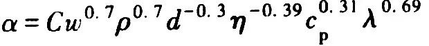 傳熱系數 α 和工藝參數之間的理論關聯見式