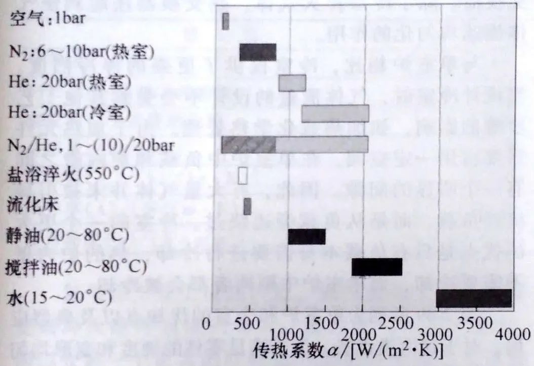 ▲圖2 不同淬火冷卻介質的平均傳熱系數