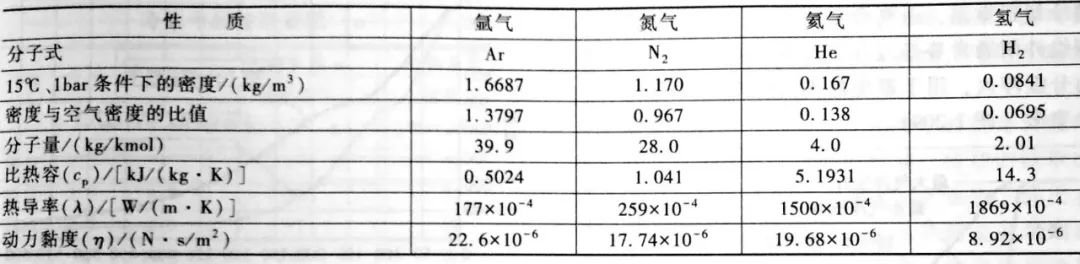 ▼表1 標準條件下(25℃、1bar) 氣體的熱物理性質