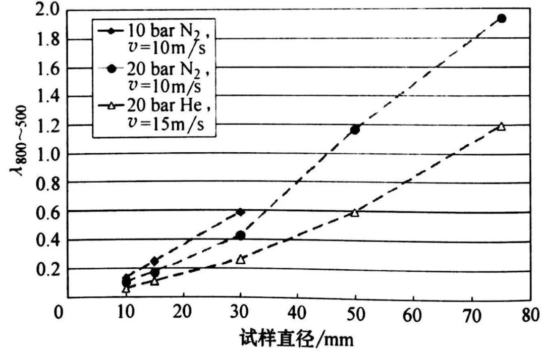 常數C包含了其他所有影響因素,如淬火室具體的空氣動力學條件、氣流紊亂程度等。一旦選定了淬火室類型和淬火氣體類型,氣體壓力和流速是能夠進行調整以達到預期淬火強度的兩個重要工藝參數。