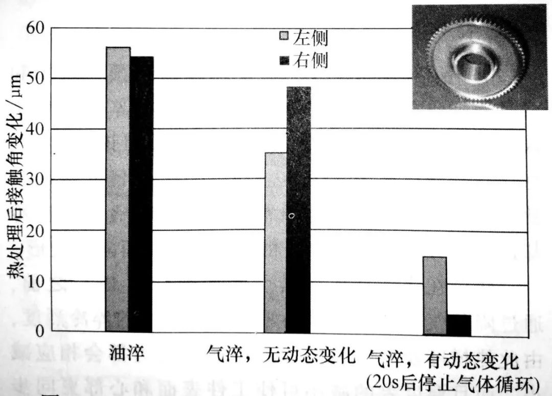總之,采用 HPGQ 和動態淬火能顯著減少熱處理變形,尤其能顯著減少變形散差。因為硬能夠大幅度減少甚至完全取消硬車加工,所以大大節約了成本。