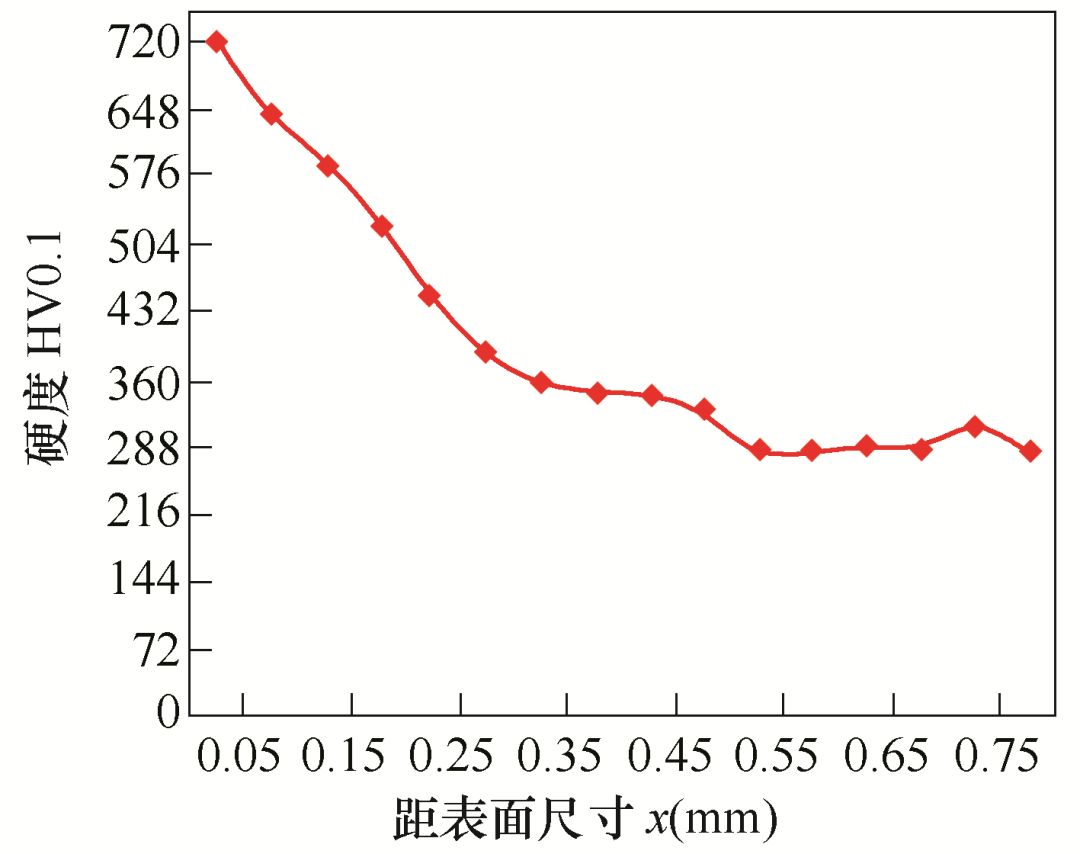 圖2 氮碳共滲鹽浴復(fù)合處理斷面梯度硬度
