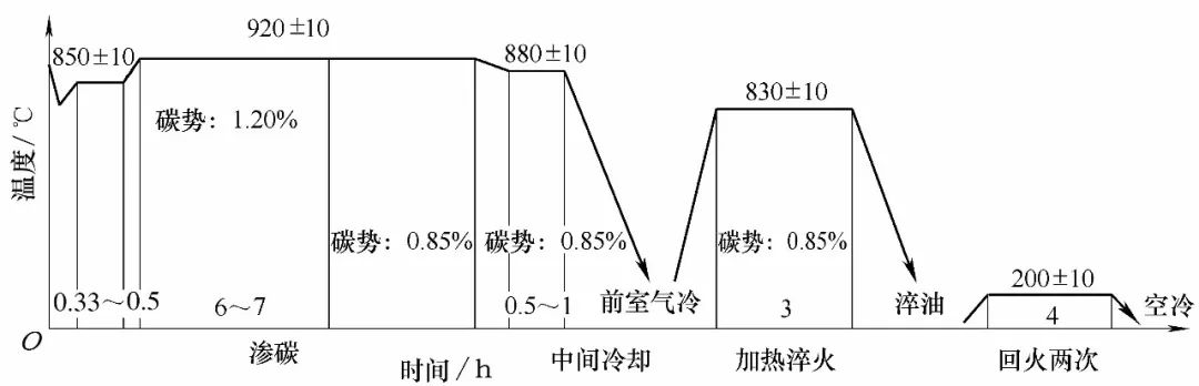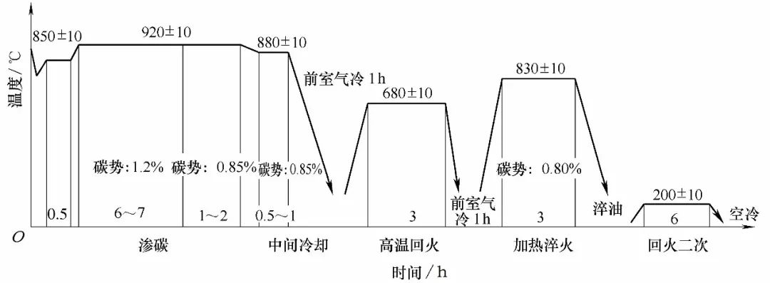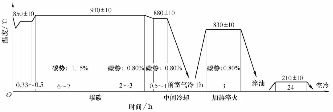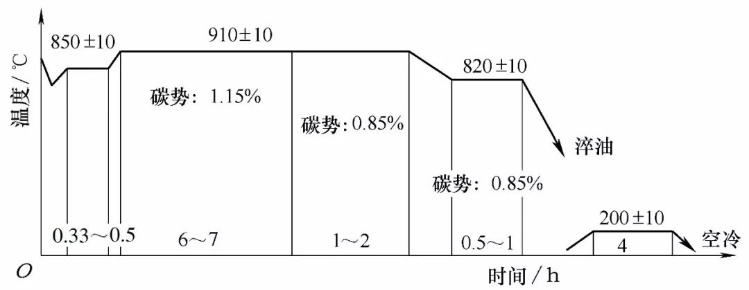 圖3  滲碳淬火、回火工藝曲線