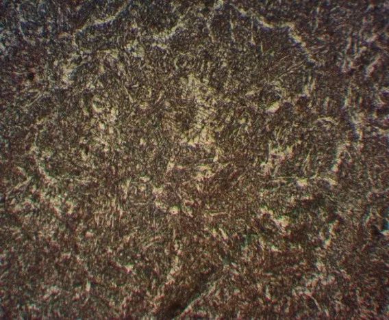 該零件材料中同時含有較高的Cr、Ni、Mo元素,而Cr、Mo為中強碳化物形成元素,除推遲特殊碳化物的形核和長大外,還由于其提高鐵的γ→α相變的自擴散激活能,使鐵的自擴散困難。Cr還會使新、舊自由能差降低,阻礙γ→α的轉變;而Ni是開啟γ相區并穩定γ相區的元素,提高γ→α相轉變時的形核功,降低轉變溫度范圍,強烈推遲珠光體的轉變,從而發生貝氏體轉變,導致正火后出現混晶組織。為此全部采用等溫正火工藝,正火加熱溫度(930±10)℃、等溫溫度(670±10)℃,等溫正火后的金相組織如圖5所示。
