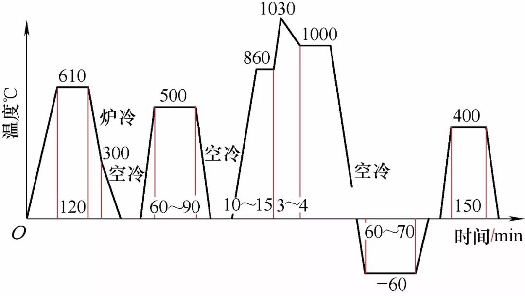 工藝流程:粗加工→去應力退火→精加工→微變形淬火→冷處理→回火→成品。