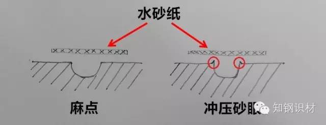 拿出一張水砂紙,輕輕的摩擦砂眼處(記得要溫柔些 *_*),凹坑邊緣輪廓發(fā)亮的是沖壓麻坑,輪廓不明顯的是原料麻點(diǎn)。