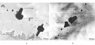 1 釩氮低碳鋼中VNMnS、AlN夾雜上的析出