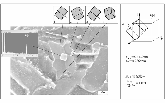 8 釩氮鋼(0.10%V-0.02%N)中晶內鐵素體在VN顆粒上形核