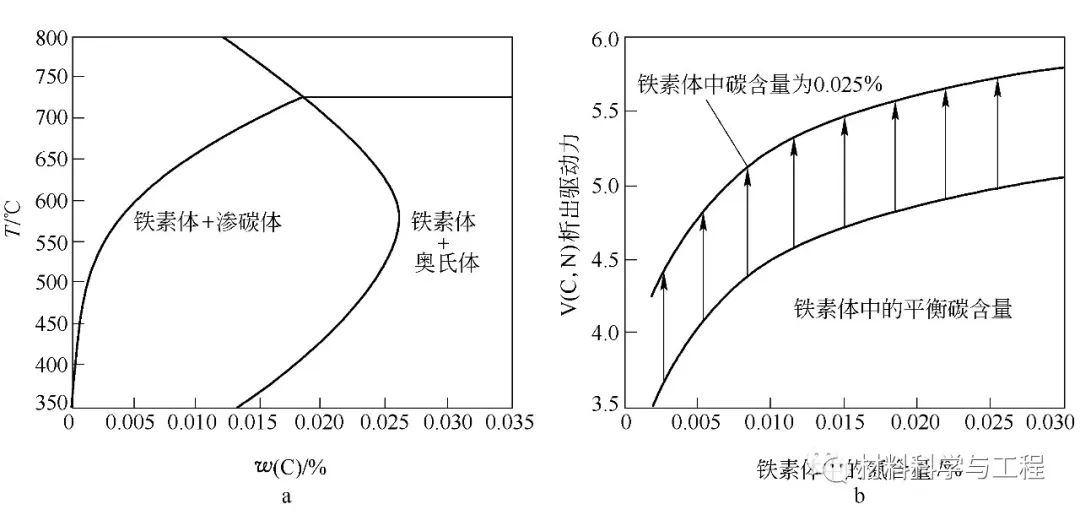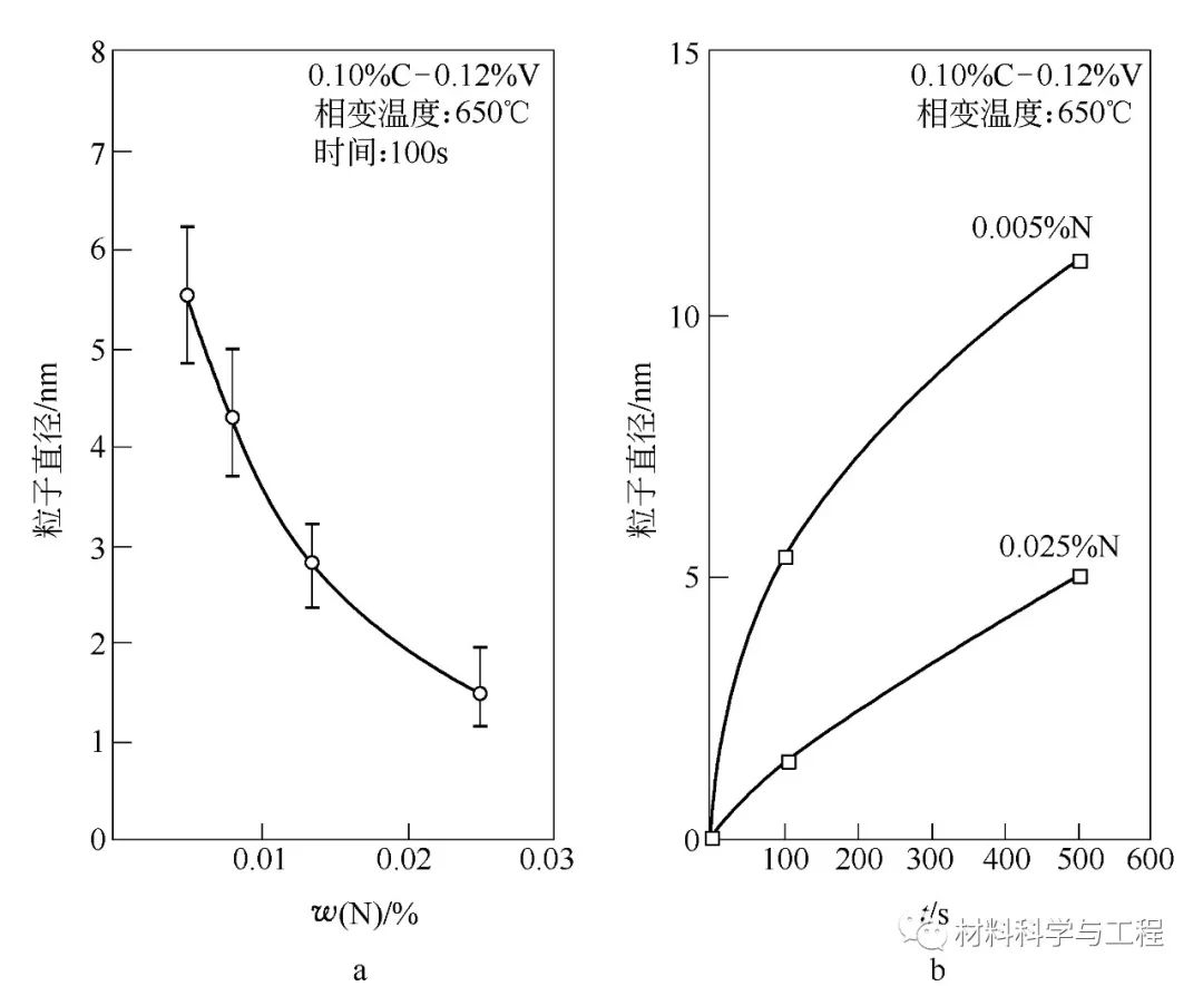 對于正常成分的鋼,在高于1000℃終軋時,幾乎所有的釩都將在鐵素體中析出。鐵素體中彌散分布的細小V(C,N)顆粒是釩微合金化強化的主要方式。關(guān)于釩在鐵素體中的析出規(guī)律也是人們研究最深入的領(lǐng)域之一。