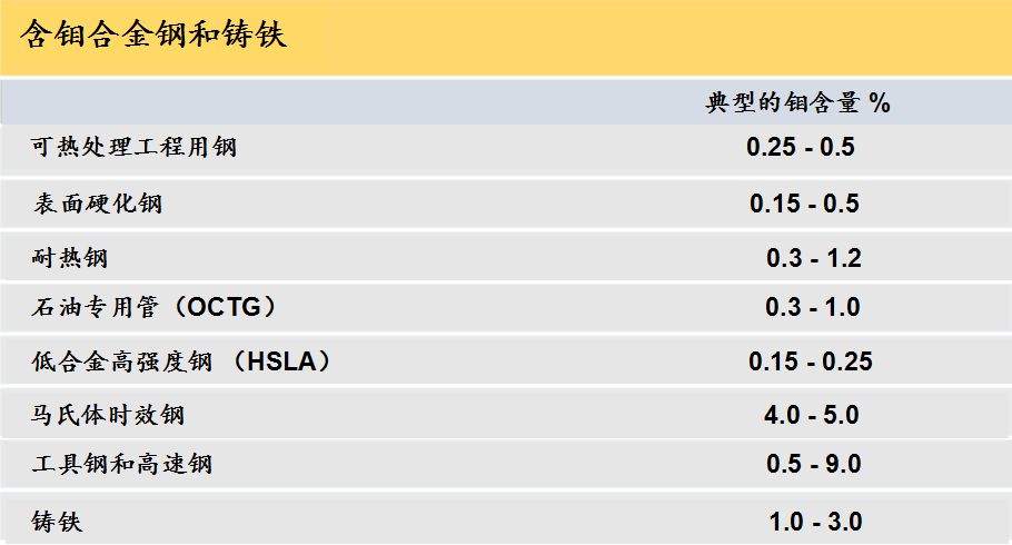 鉬的冶金學作用