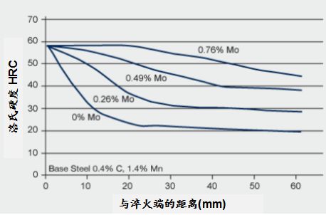 圖3 喬米尼淬透性曲線:淬透性隨Mo含量增加而提高