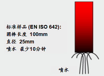在實驗室采用末端淬火試驗進行模擬 (Jominy 試驗)。將標準試樣加熱,然后一端進行水淬。樣品的冷卻速率在噴水冷卻的一端最高,相對的另一端最低。樣品冷卻后,打磨表面,獲得硬度分布數據。沿試樣方向硬度的變化反映了不同冷卻速率帶來的金相組織的變化。