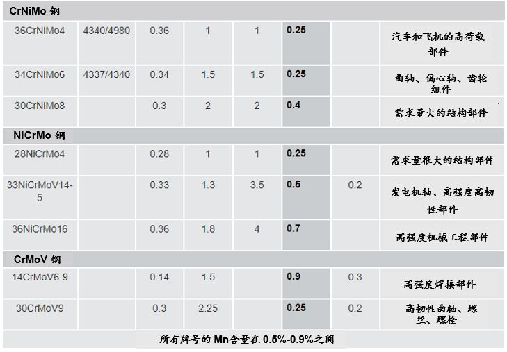 標準的調質鋼常常采用一系列合金元素包括錳、鉻、鉬、鎳和硅的組合。