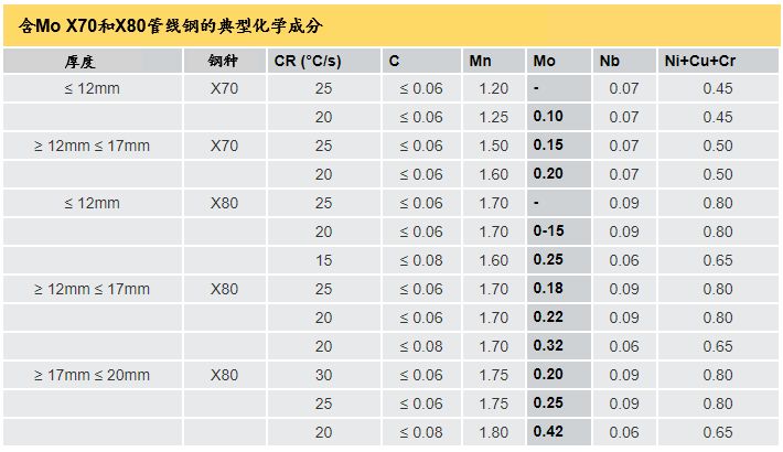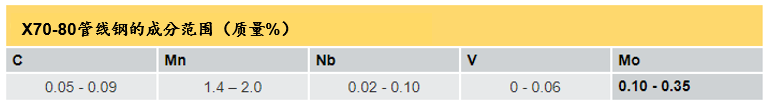 表2 含Mo X70和X80管線鋼的典型化學成分