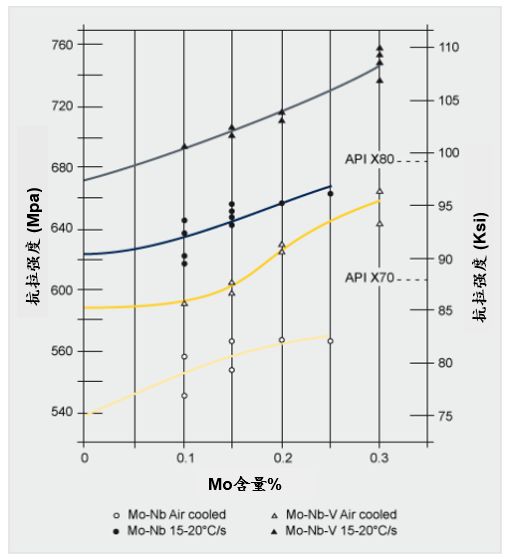 Mo在熱機械軋制期間延遲了微合金化元素的析出;