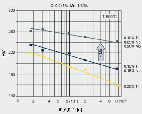 Mo可防止鐵素體中析出的細小NbC或TiC顆粒的粗化(奧斯特瓦爾德熟化)(圖4)
