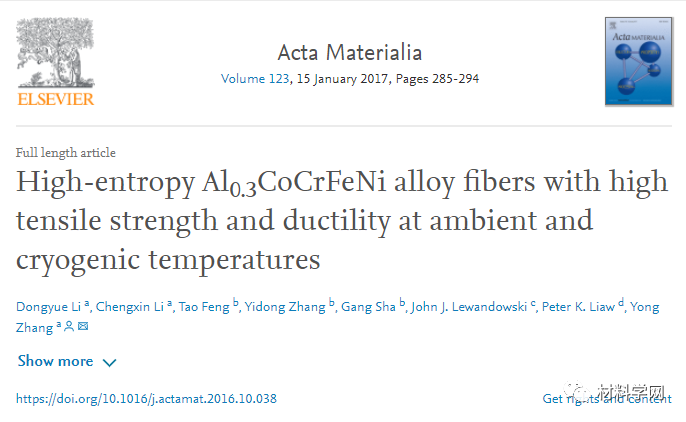 北科大《ACTA》新突破!成功制備在低溫下具有超高強(qiáng)度和延展性的高熵合金纖維