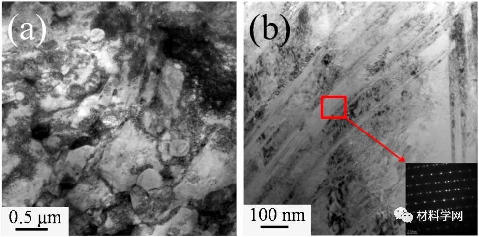 圖10在:(a) 298 K, (b) 77 K處測試的直徑為3.15 mm的Al0.3CoCrFeNi纖維的TEM顯微圖。