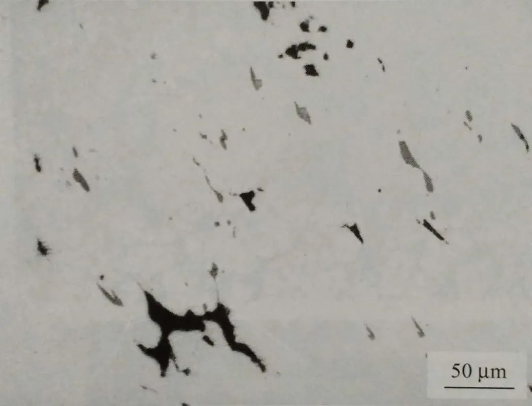 取截面金相試樣進行顯微觀察,主裂紋附近有一些呈網絡狀分布的細裂紋、孔貌及 MnS 夾雜物(圖1-28)。