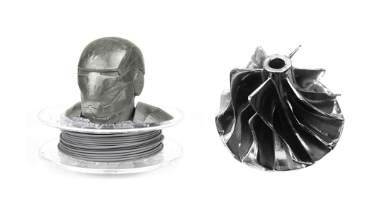 用ColorFabb的SteelFill打印的鋼質雕塑,和316L不銹鋼打印的壓氣機葉輪