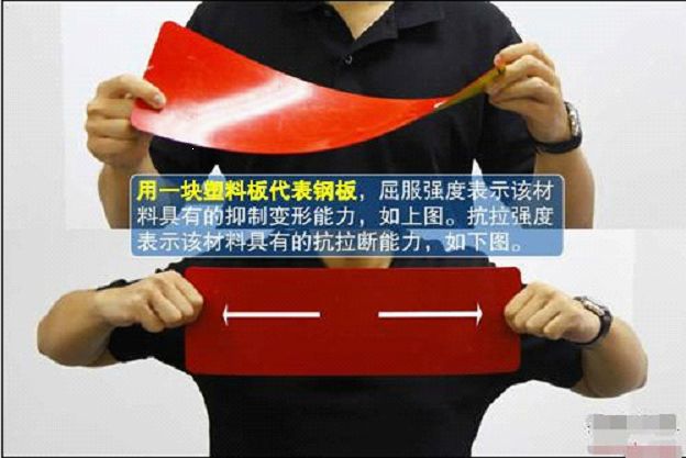 通常,想要弄彎一塊鋼板要比弄斷一塊鋼板容易的多,所以同一塊材料的抗拉強度要大于屈服強度。