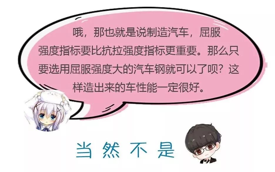 在汽車鋼結構設計過程中,屈服強度指標確實比抗拉強度指標重要的多,但不是說只要選用屈服強度大的鋼材就行,一輛汽車上用到的高強鋼并不是只有一種,不同的部位會使用不同的鋼種,而且不同的部位對鋼種強度的要求也都不一樣。